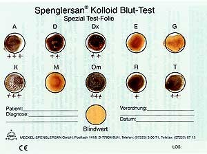 Der Spenglersan Kolloid Bluttest legt zugrunde, dass die Oberfläche der roten Blutkörperchen,als Erinnerung an bereits überwundene oder noch bestehende Krankheiten, Antikörper trägt. Durch eine Verklumpung des Blutes beim Kontakt mit dem jeweiligen Spenglersan Kolloid kann der Therapeut Hinweise für Krankheiten erkennen. Die Spenglersan Kolloide bestehen u.a. aus Antigenen (Viren/Bakterien) und Antitoxinen, gewonnen aus Viren und Bakterien.